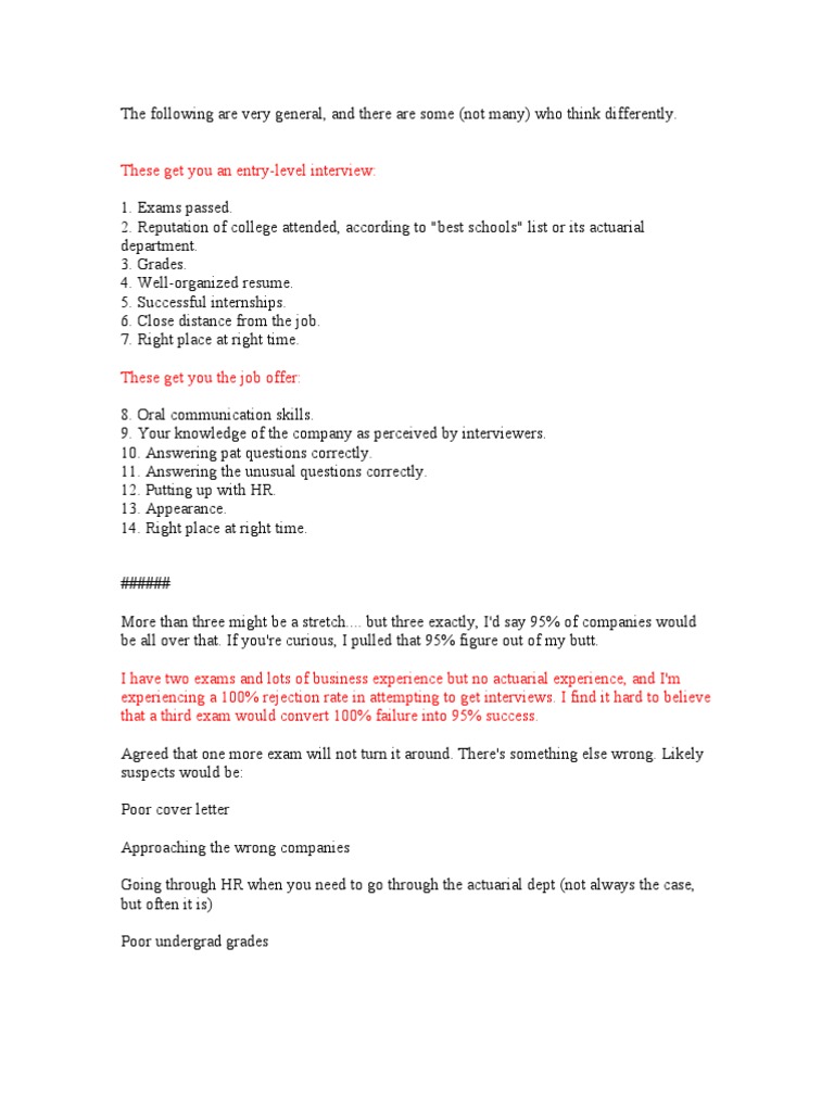 suggestion: actuarial internship resume